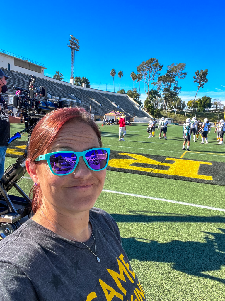 After my freshman year — though I absolutely loved soccer — I knew that I really wanted to get into the entertainment industry. So, I felt like it was time to probably make a move somewhere else just for my career purposes. And I was fortunate that Neil gave me my full release and said, “Yeah, I’ll call any coach that you want. Just keep soccer as part of your life. Let that pay for school and keep going with that.” And I’m very grateful he did because then I was able to go to TCU and continued my career and had an incredible time. And it’s so great. I’m actually working on this project now. One of the other girls on our team — Angie Shotzberger — is part of our crew. We played together at TCU. It’s a really kind of full circle moment for us.